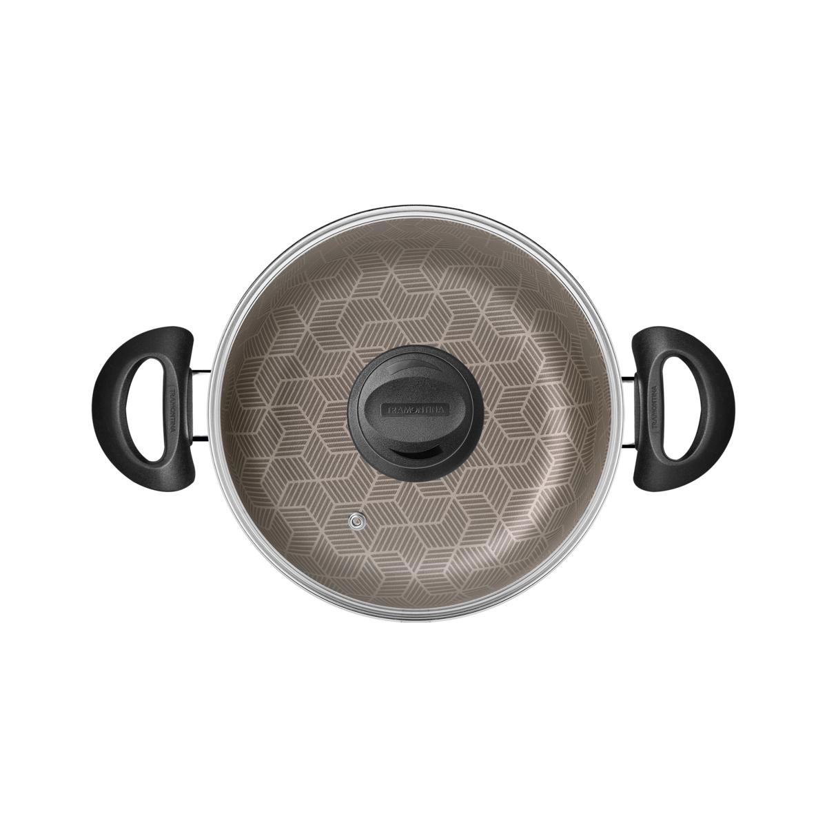 É produzida em alumínio com espessura de 1,8 milímetros e revestimento antiaderente Starflon Max. São essas características que a fazem uma caçarola indispensável para sua cozinha, pois proporcionam um cozimento rápido e uniforme dos alimentos e evitam que eles grudem em sua superfície.
