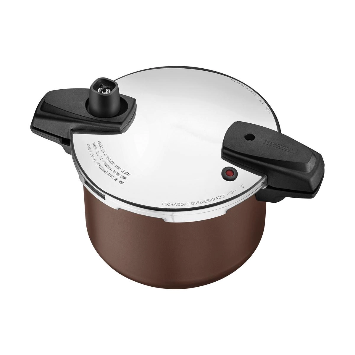 A panela de pressão Tramontina Arizona Induction em alumínio com revestimento interno e externo em antiaderente Starflon Max Areia 20 centímetros de diâmetro 4,5 litros é perfeita para o dia a dia. Com 20 cm de diâmetro e capacidade de 4,5 litros, oferece cozimento rápido e uniforme graças ao corpo em alumínio de 3,2 mm.