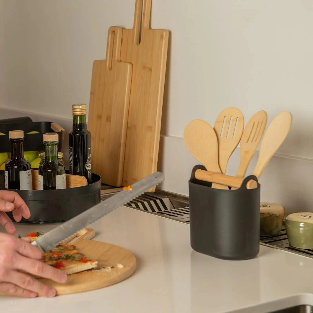 • Ideal para organizar utensílios na bancada ou levar talheres à mesa