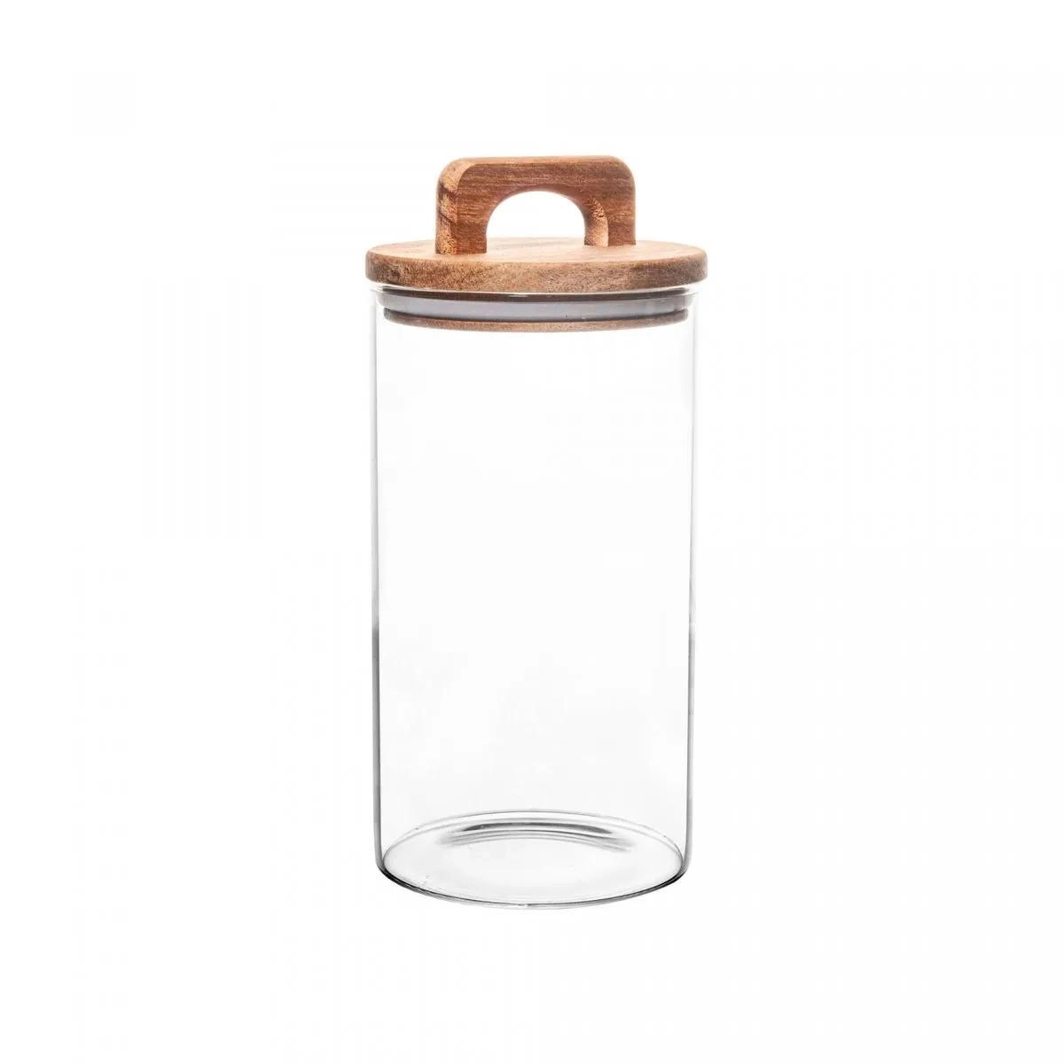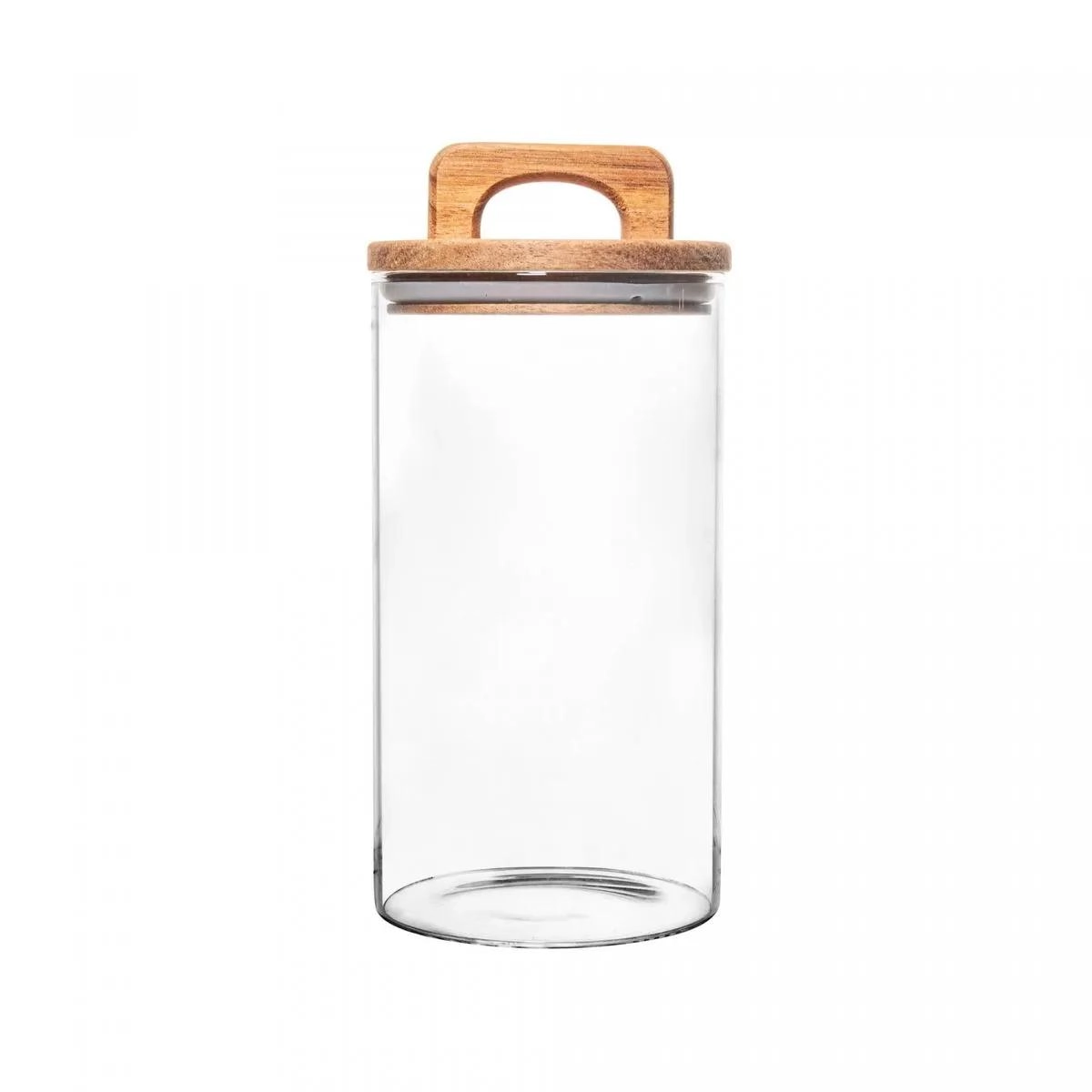 Mantenha seus alimentos frescos, organizados e com estilo com o Porta Mantimento de Vidro Borossilicato com Tampa de Acácia da Wolff.