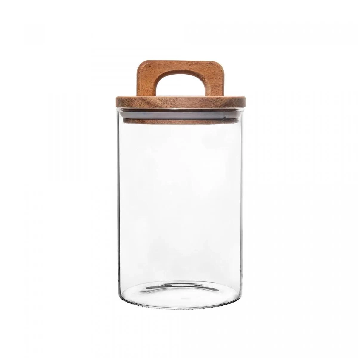 Mantenha seus alimentos frescos e sua despensa organizada com o Porta Mantimento de Vidro Borossilicato com Tampa de Acácia da Wolff.